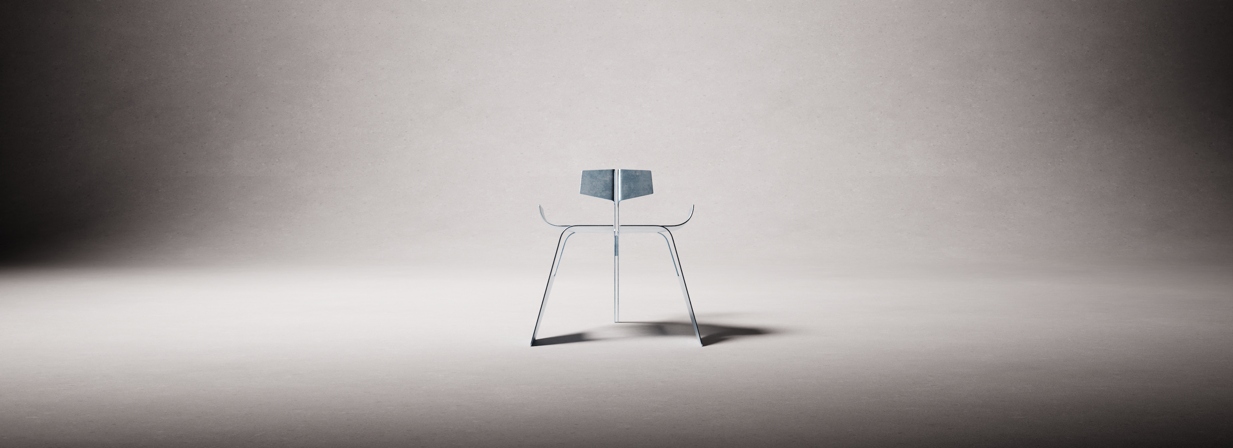 Ce fauteuil en acier galvanisé est né d’un processus rigoureux, dans le prolongement des techniques initiées par la kneeling chair UVITA, tous deux réunis au sein d’une collection singulière.