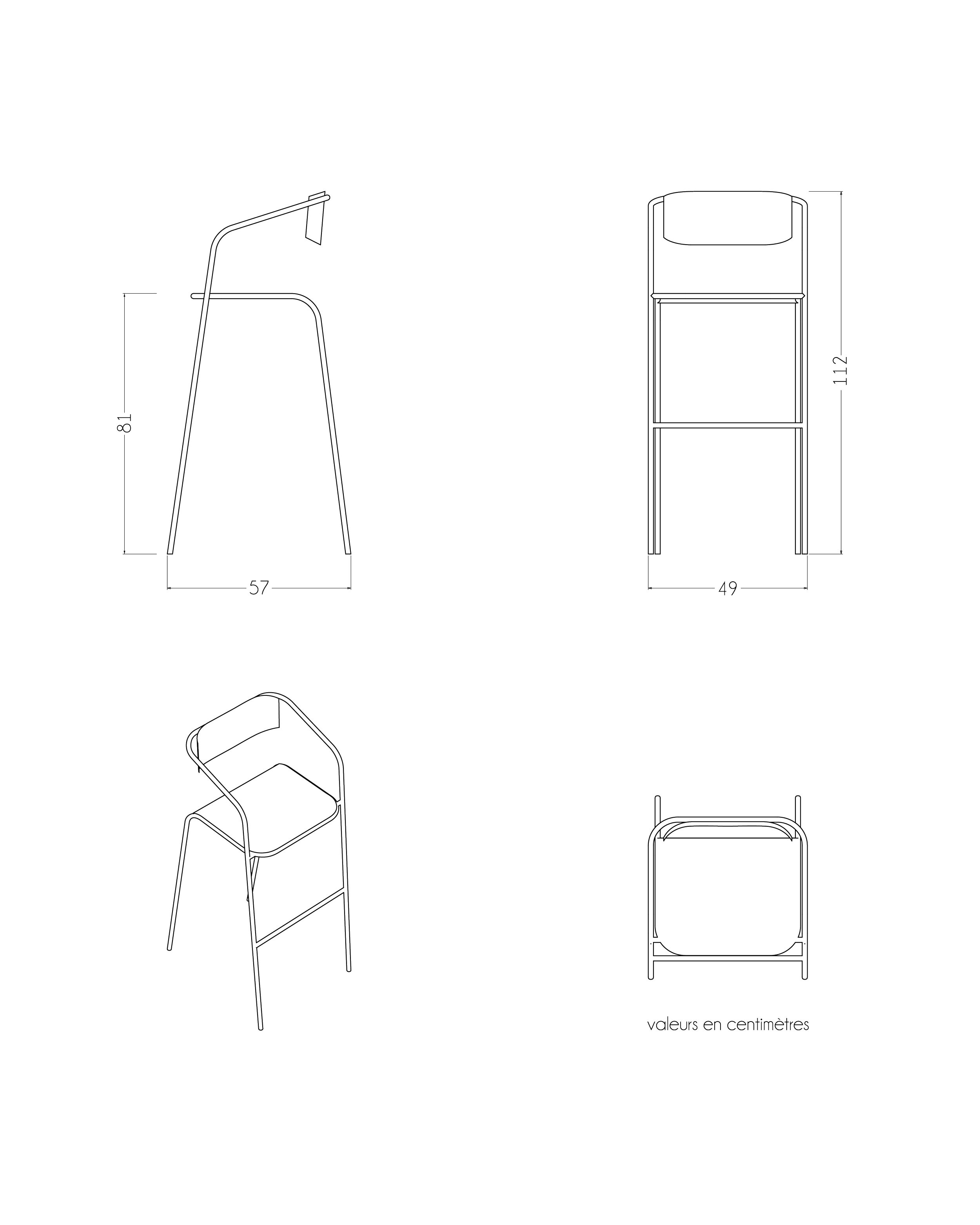 Cette approche méthodique donne naissance à une silhouette élancée et identifiable, ancrée dans une esthétique industrielle contemporaine (brute et élégante) et profondément adaptable. Le dossier flottant est soudée à la structure tubulaire.